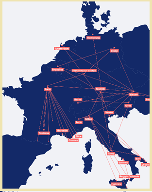 今週のテーマは夜行列車です。タイトルは『 Le retour du train de nuit en France フランスの夜行列車の復活 』です。 夜行列車は 1930 ~ 1970 年に全盛期をむかえますが、その後は衰退の一途をたどったそうです。その理由は、ローコストの飛行機、マイカーの利用、TGV の路線の拡張などです ... les avison des compagnes 'low-cost', l'utilisation de la voiture individuelle et le développement du TGV ...expliquent ces fermetures (= de lignes de train de nuit ) 。 ところが、ところが ! その夜行列車が復活し始めているのだそうです。  欧州を結ぶ夜行列車 欧州を結ぶ夜行列車なにしろ TGV より安くつきますし、なによりも " CO2 の排出が飛行機よりもはるかに少ない " 。列車は環境問題を語るうえでの争点にもなっているのだそうです ... le train de nuit est plus écologique que l'avion... ... le train est ainsi devenu un enjeu écologique 。時間はかかるかもしれませんが、それがかえって、私たちに時間とゆとりをもたらしてくれるのでしょうね。