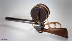 長崎で使われた写真銃1870 年 12 月 2 日、パリはプロイセンによって包囲されていました ( パリ・コミューンやルイーズ・ミシェルにまつわる課でも触れましたね ) 。この時、ジャンセンは なんと ! 気球にのってパリを脱出。アルジェリアのオランに向かいました。日蝕を観察するためです ( 曇りで見られなかったそうですが… )。アフリカやアメリカばかりか日本にもやってきました。長崎で、写真銃をもちいて、太陽のまえを金星が通過するのを観察するためでした。