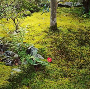 一つは、余命いくばくかの父とその娘の節子とが、散策から戻り、語り合う場面です Le père ...qui va bientôt mourir, devise avec sa fille Setsuko de la promenade qu'ils viennent de faire dans Kyoko... 。苔のむす寺に陽がさし、苔が一層美しく見えた La lumière rehaussait encore la mousse と父が語ると、娘が、その苔のうえにおちている一輪の椿を愛でます。